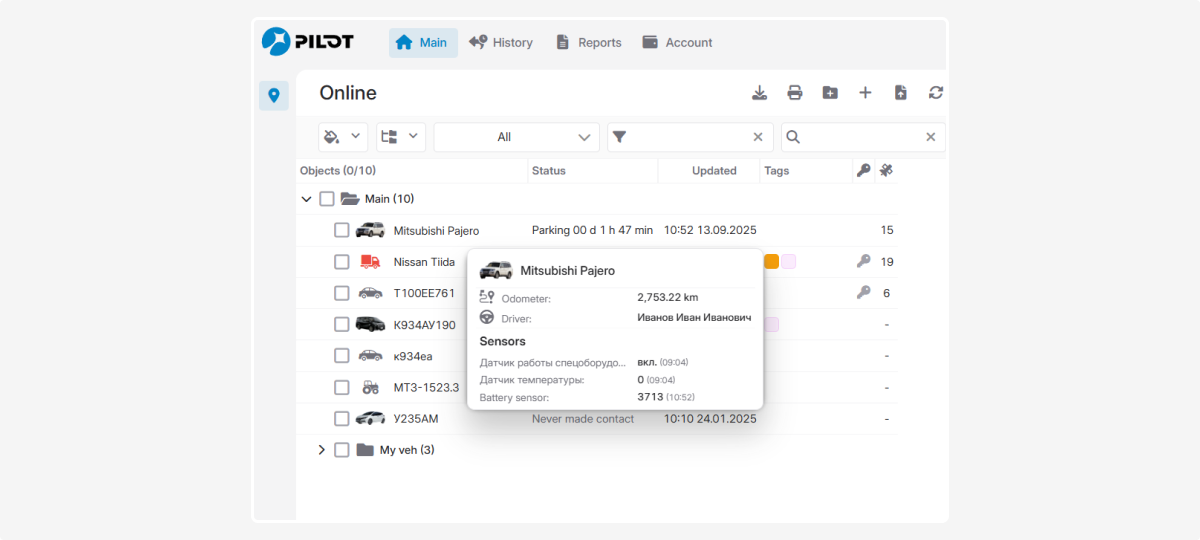 To open the tooltip, click the object icon on the map with the left mouse button.