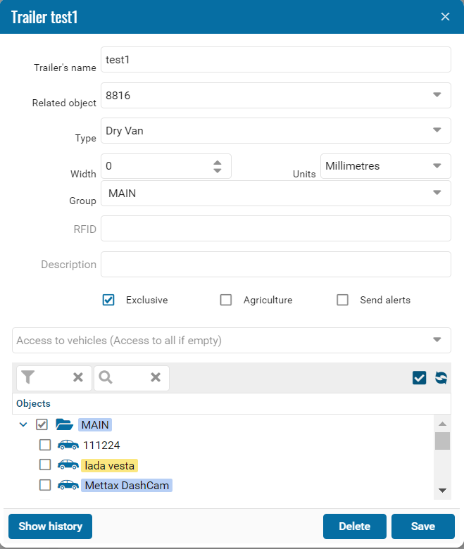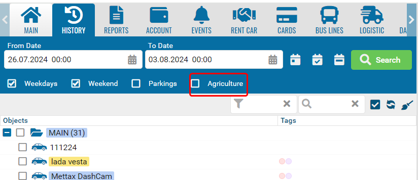 The agricultural module is a combination of two modules. Geofences Module and Trailers Module.