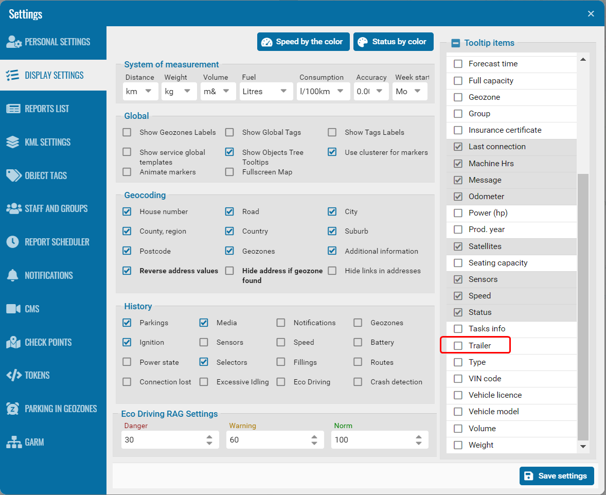 • Send alerts – if we check this box, we will receive alerts on the Pilot platform when the trailer is linked or not linked to any object.