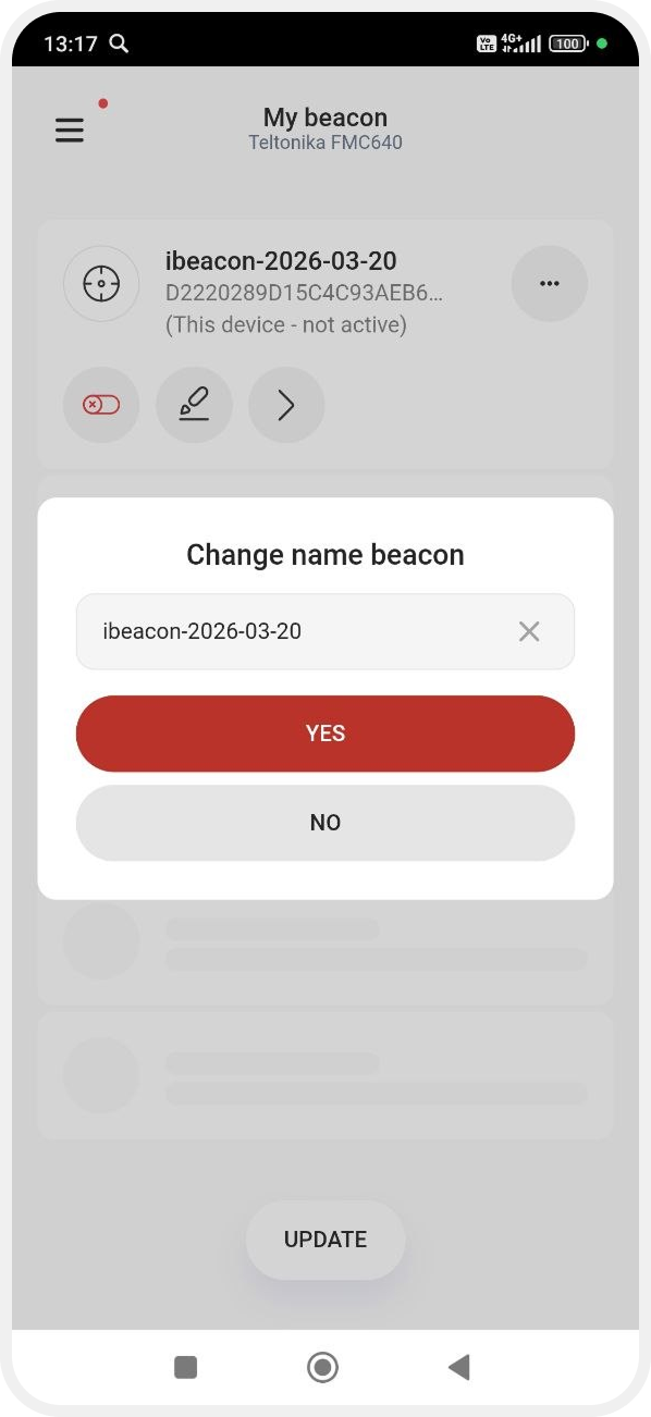 In the My beacons tab, you can view and manage Bluetooth beacons connected to the device.