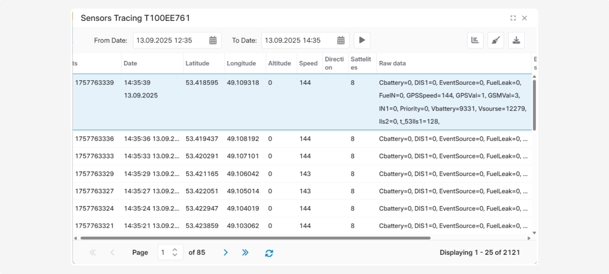 To display the usual sensor value in volts, the raw value must be divided by 1000. In the sensor settings window, in the Conversion formula field, we write: /1000.