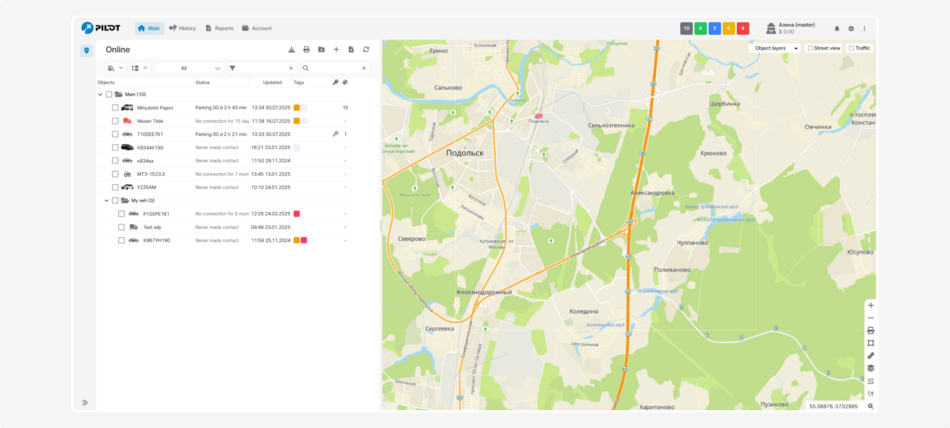 The user account is a basic interface without admin rights. Here, users can monitor vehicles, equipment, people, and other assets.