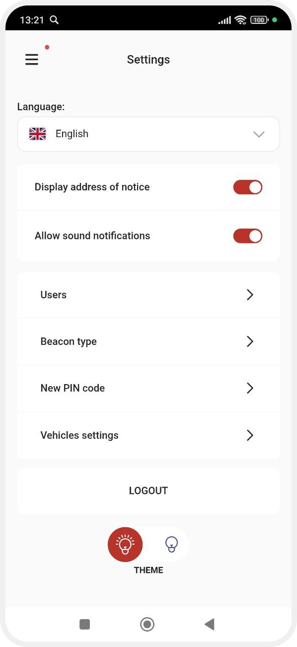 set notifications for events:— no connection with vehicle— movement with ignition off— arm/disarm events— low battery