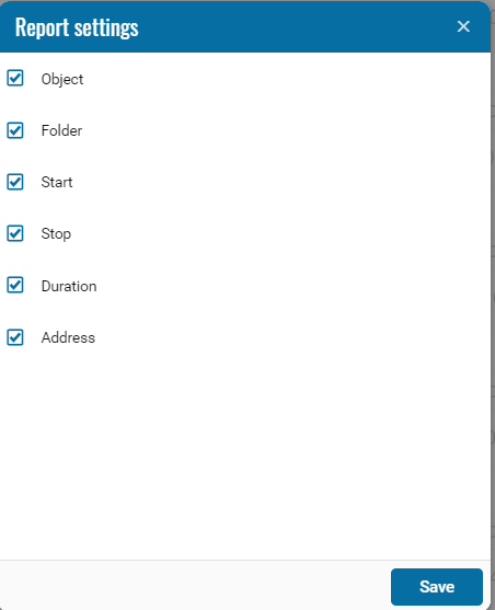 • Object - Object selected for the report;
