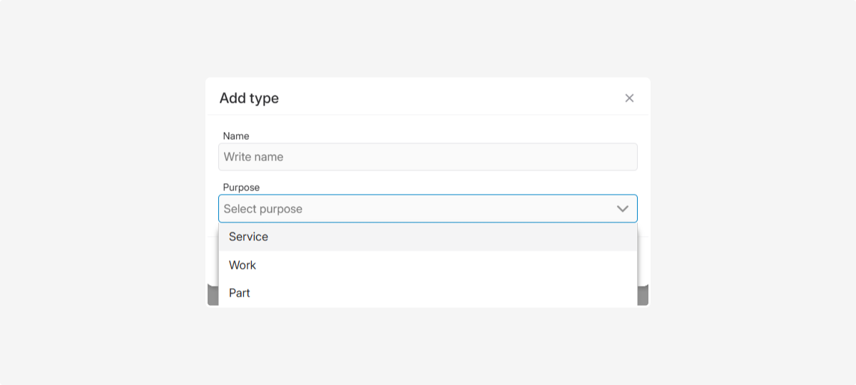 Select a category:Service — e.g., scheduled maintenanceWork — e.g., replacement, repairMaterial — consumables, spare parts