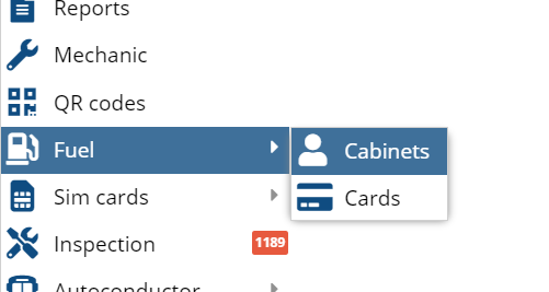 Fuel Fuel viewing and configuration window. • Click Add +. • Fill in the fields. • Add configuration. Add cabinet Fuel cards View and search cards. Balance history.