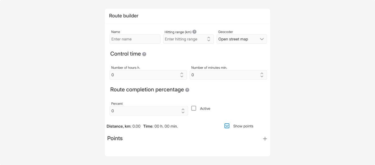 To create a route in the system, you need to fill in the main parameters in the route builder and add route points that will be displayed on the map. In this article, we explain how to create a route and configure its parameters so it is ready for use in the system.