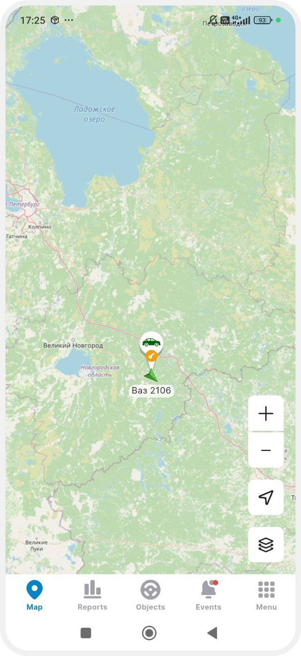 After logging into the app, you will land on the Map section. The map shows all objects linked to your account.
