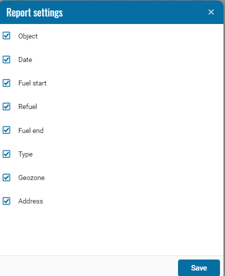 • Address - address of refueling events.