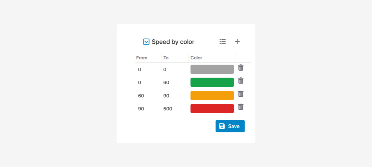 Speed color indicators show speed changes using different colors. On the movement track in History, you’ll see how fast the object was moving at each moment.