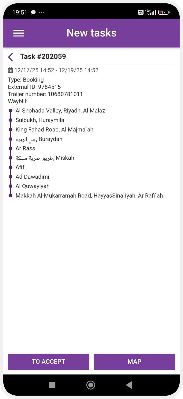 3. After all route points are visited, the driver marks the task as completed and, if necessary, submits a report on its completion