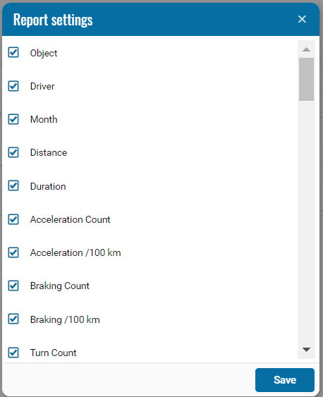 If necessary, you can disable certain parts of the report by clicking on the icon, when pressed, a menu opens where you can disable / enable certain fields.