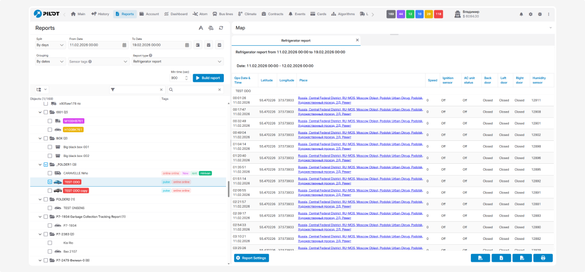 For example, if the refrigerated unit is equipped with temperature and humidity sensors, their readings will appear in the report.