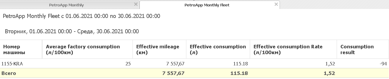 • Average factory consumption (L/100KM) - factory indicator. Taken from the object settings.
