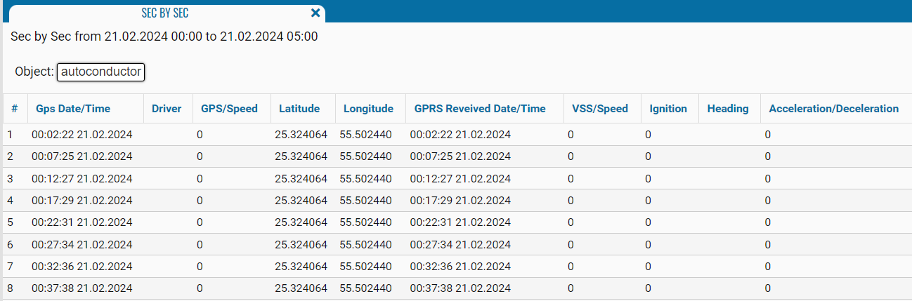 Ignition - sensor states for the specified period;