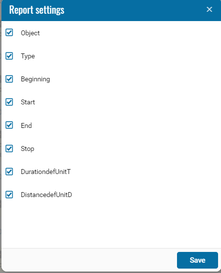 This report is designed to account for trips and stops by type, when expanding the item, the movement and parking of vehicles are displayed.