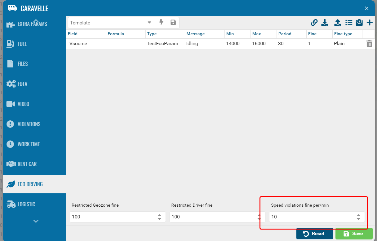Eco driving settings