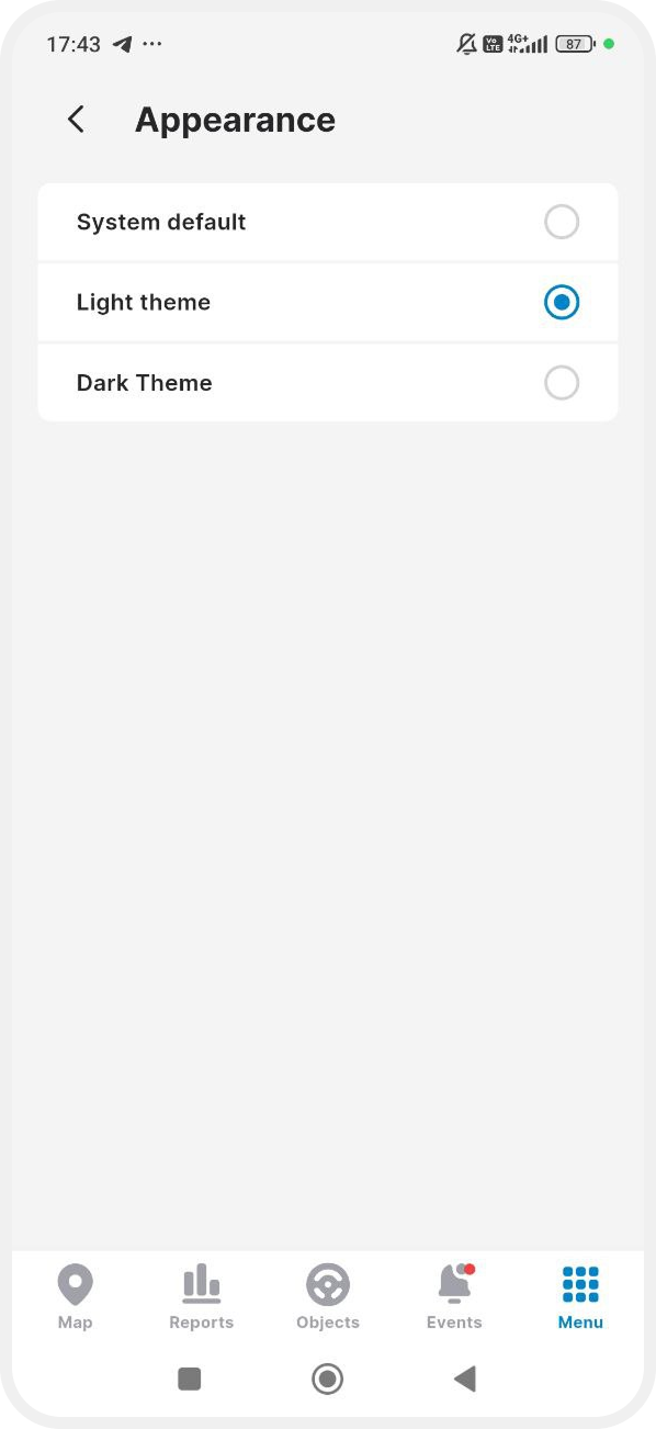 Light theme — the app will be displayed in light colors