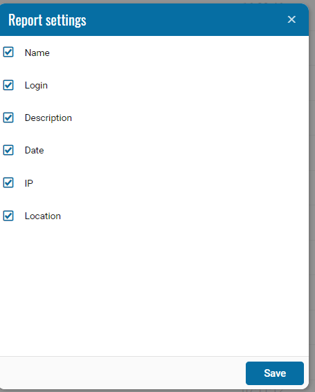 If necessary, you can disable certain parts of the report by clicking on the icon, when pressed, a menu opens where you can disable / enable certain fields.