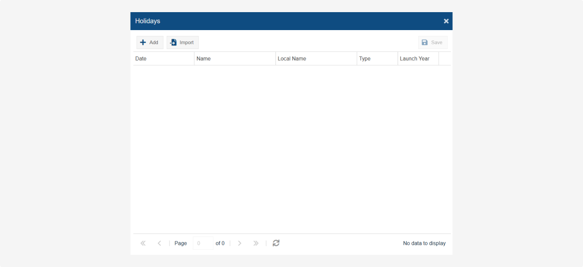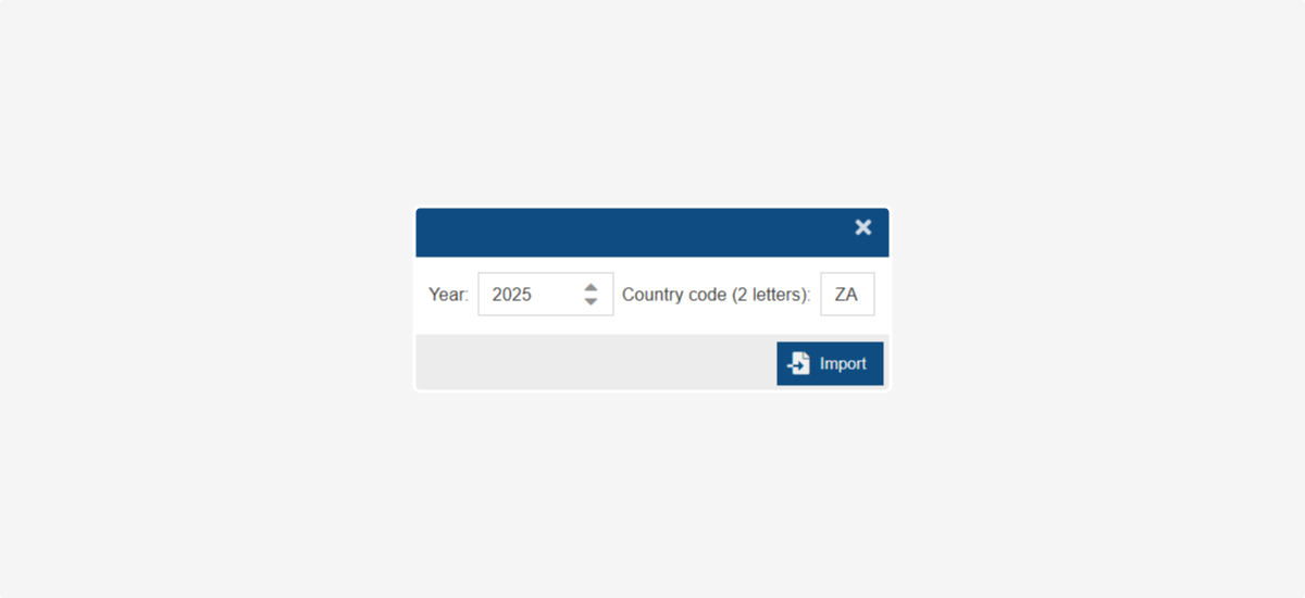 2. In the opened window, click Import to automatically upload the calendar for the desired year