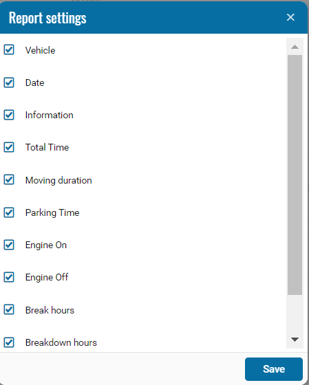 If necessary, you can disable certain parts of the report by clicking on the icon, when pressed, a menu opens where you can disable / enable certain fields.