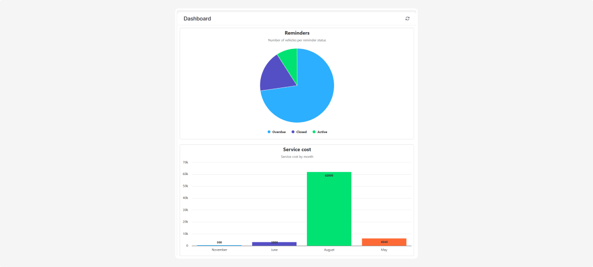 The dashboard is a screen with visual data in the form of charts and diagrams.