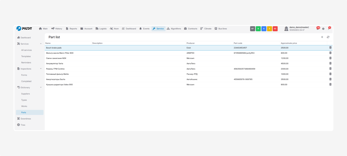 Here you keep information about spare parts suppliers or manufacturers.