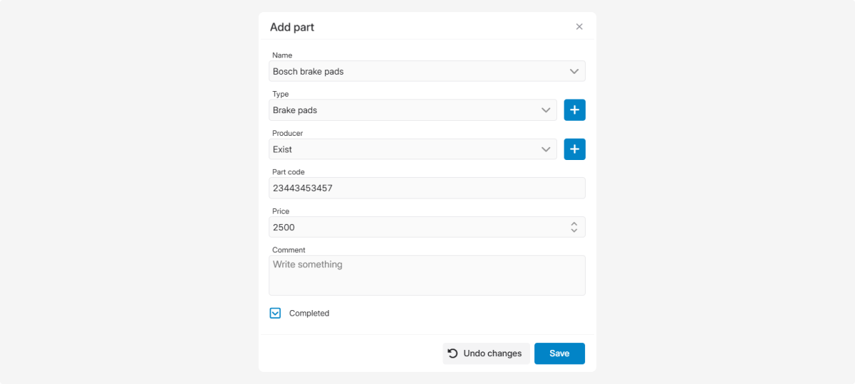 4. Check Completed if the part is already installed