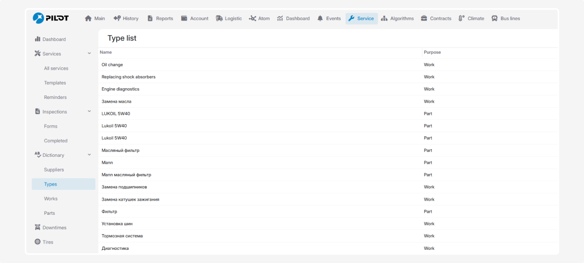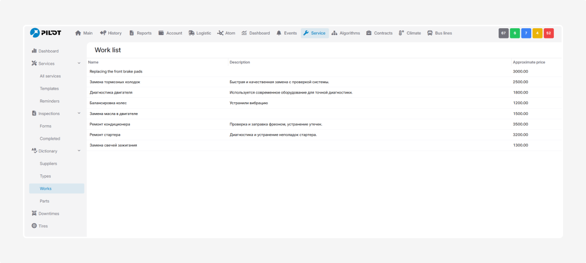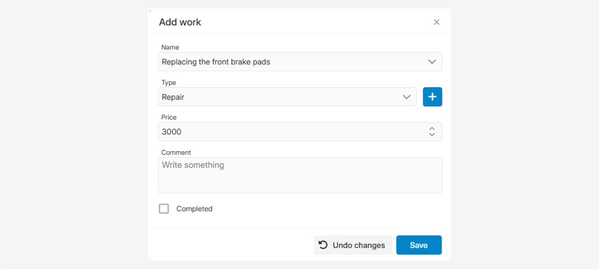 In the Works tab you create and store all jobs that can later be added to service records with one click.