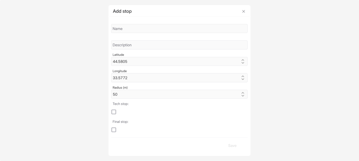 4. Click Save — the stop will appear in the list.