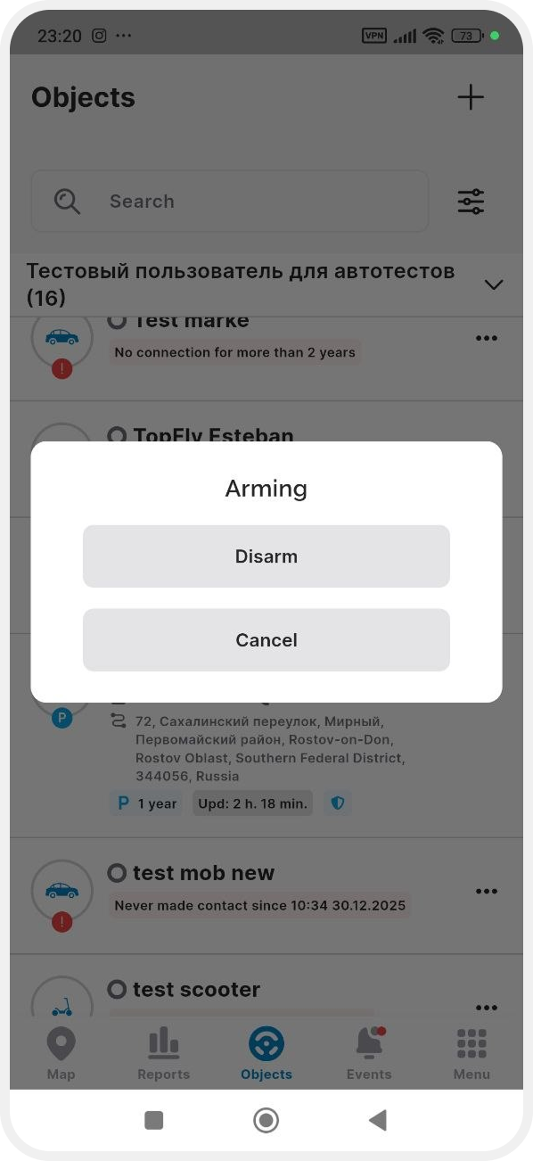 • Disarm — disarm the object