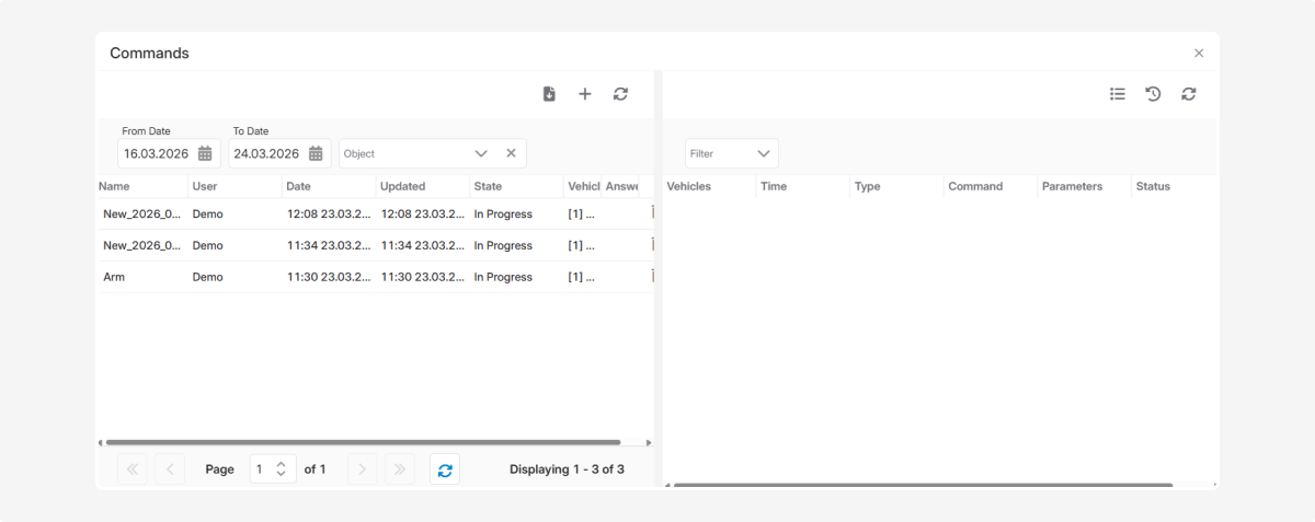 2. Select the vehicle for which the command is being created.