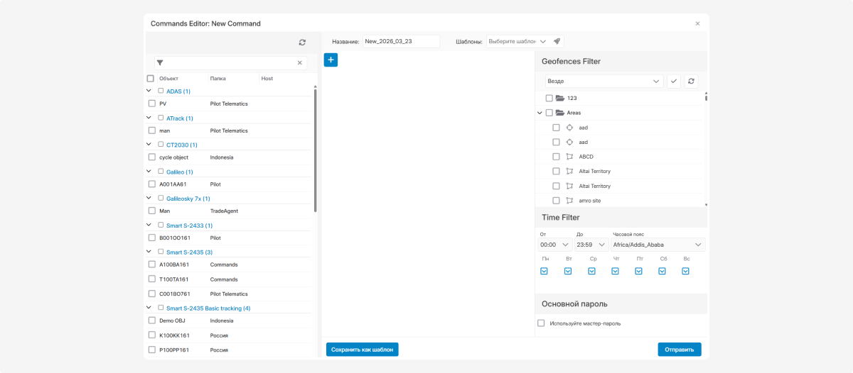 2. Select the vehicle for which the command is being created.