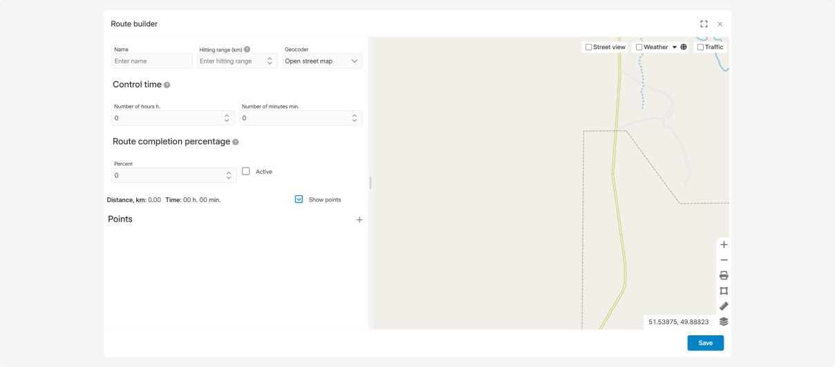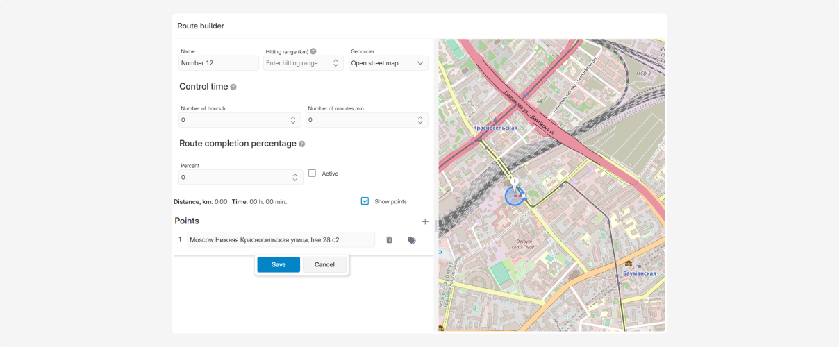 To create a route in the system, you need to fill in the main parameters in the route builder and add route points that will be displayed on the map. In this article, we explain how to create a route and configure its parameters so it is ready for use in the system.