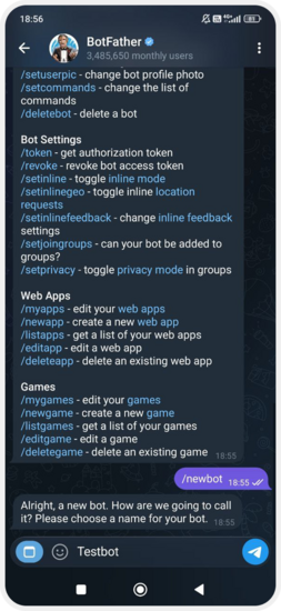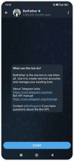To create your own Telegram bot, you will need the official @BotFather service — the main Telegram bot used to create and manage all other bots.