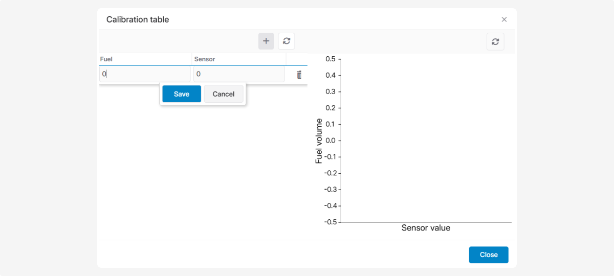 You can configure the table in the sensor parameters window or upload a ready-made table from a file.