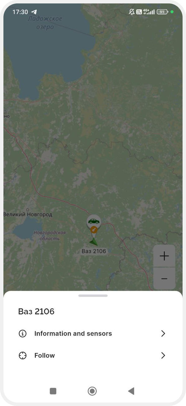 After logging into the app, you will land on the Map section. The map shows all objects linked to your account.