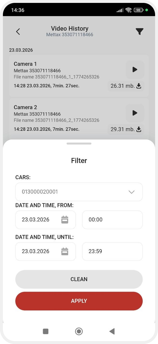 Only the recordings that match the selected filter will be displayed.