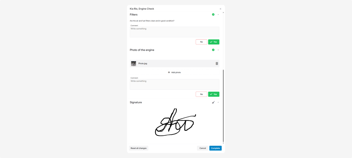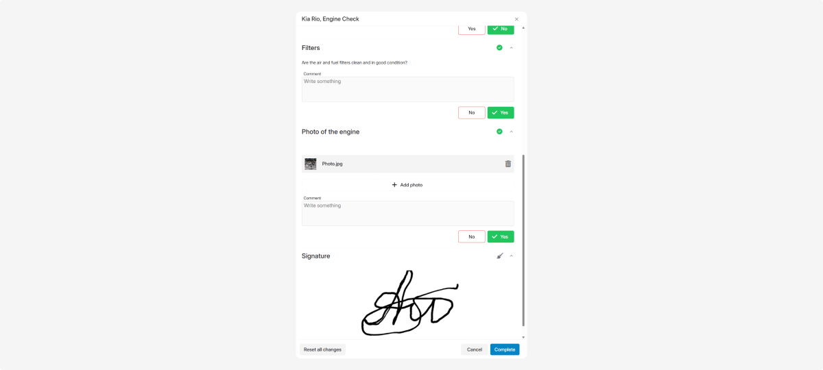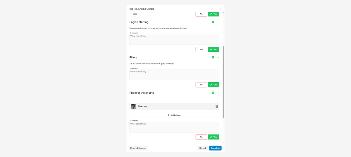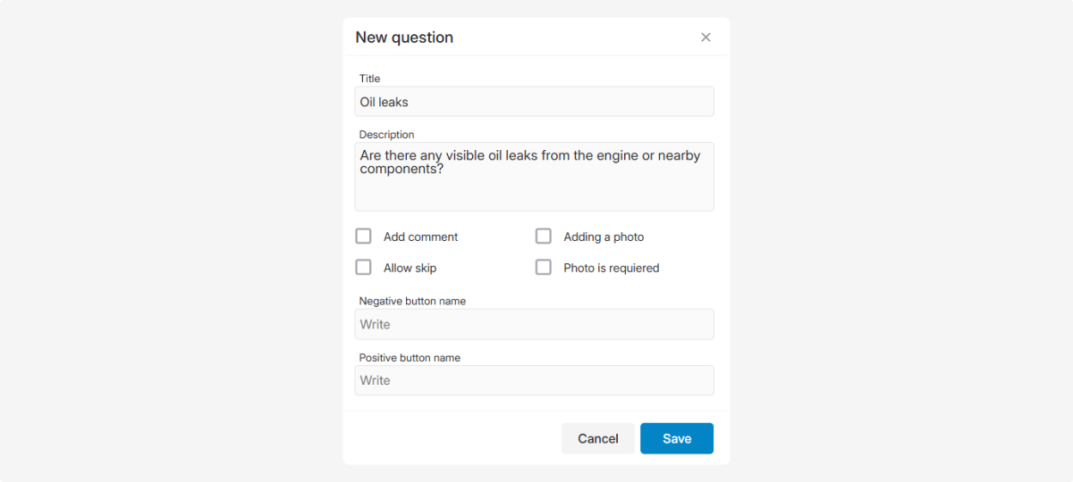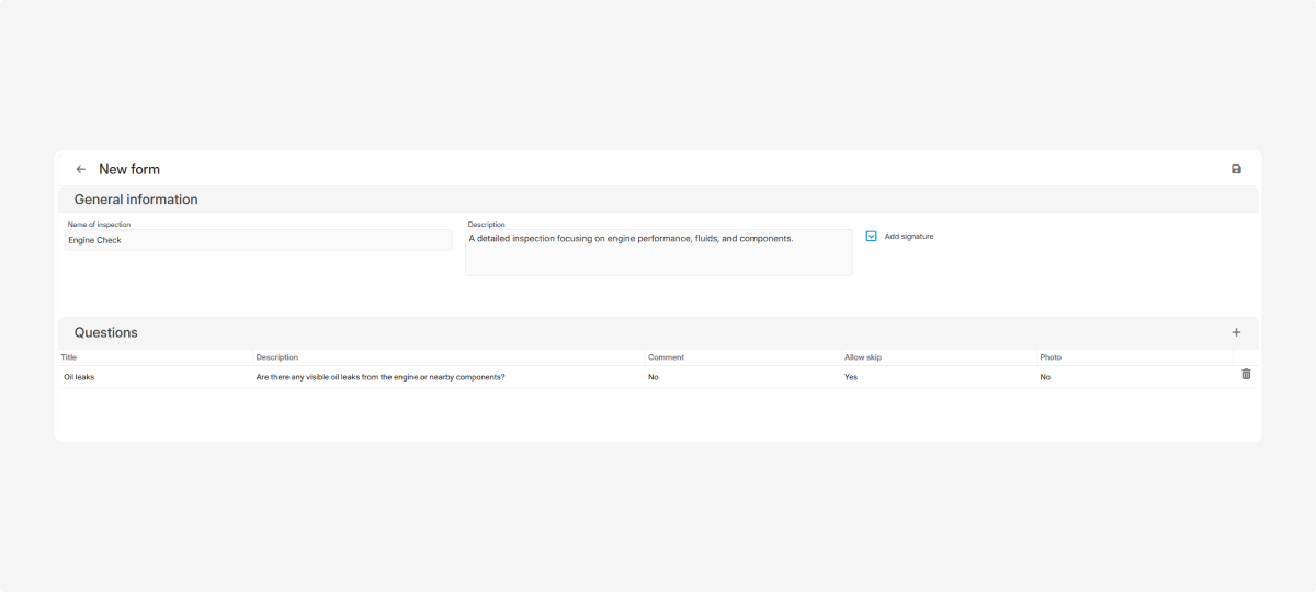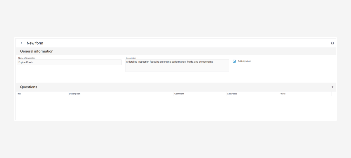 2. Comment — describe when and how the form should be used. Example: “A detailed inspection focusing on engine performance, fluids, and components.”