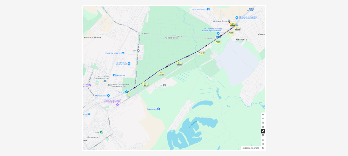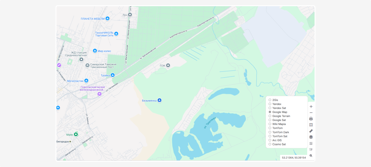 All tools for working with the map are grouped in one place — a dedicated panel in the bottom-right corner of the screen.