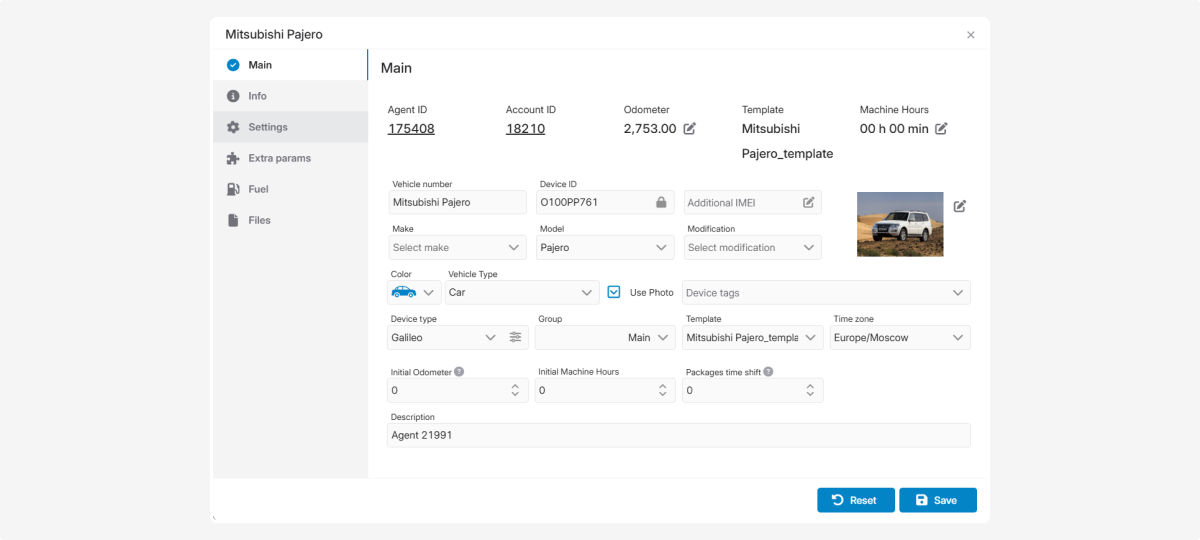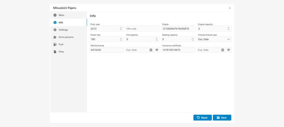 To save an object in the system, it is enough to fill in the required fields. However, for full functionality and accurate telematics data, it is recommended to complete all information.