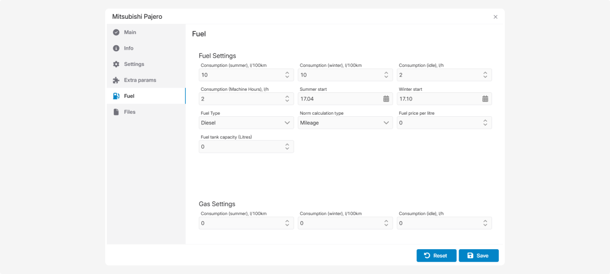 In this tab, you can configure fuel consumption parameters.
