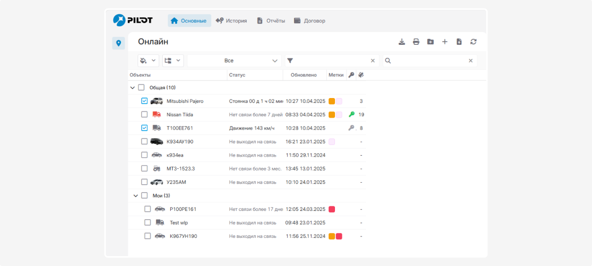 To configure object tracking, go to the Online tab. Here you can add objects for monitoring and, if needed, group them together.