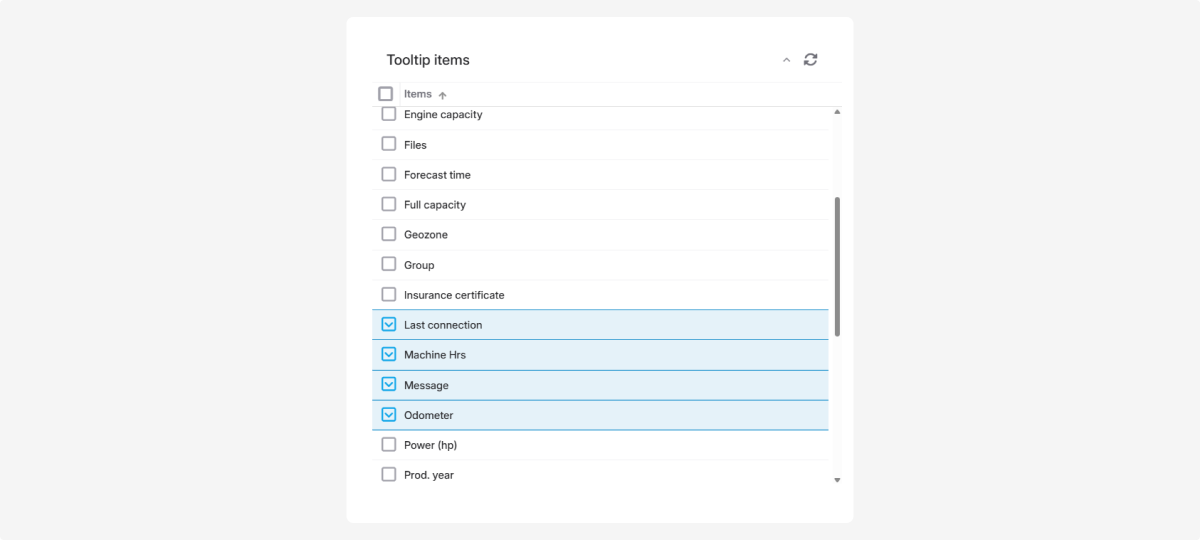 In the Tooltips items section, you can choose what additional information appears when you hover over an object icon on the map.