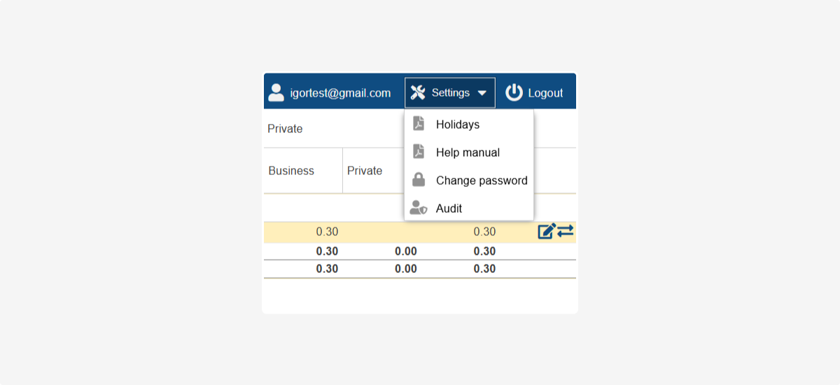 At the top of the screen, you can select the period for which you want to view trips. To do this:
