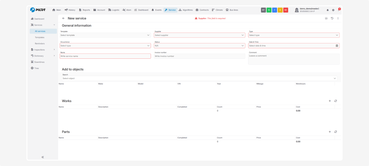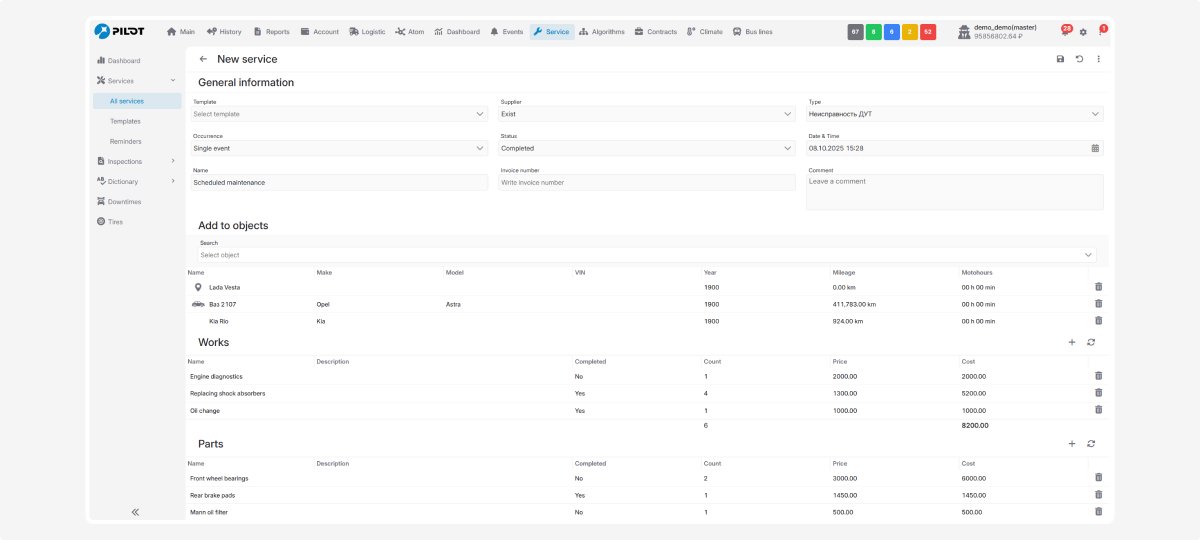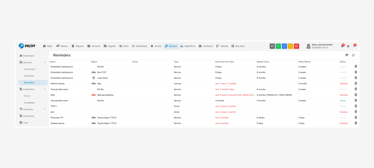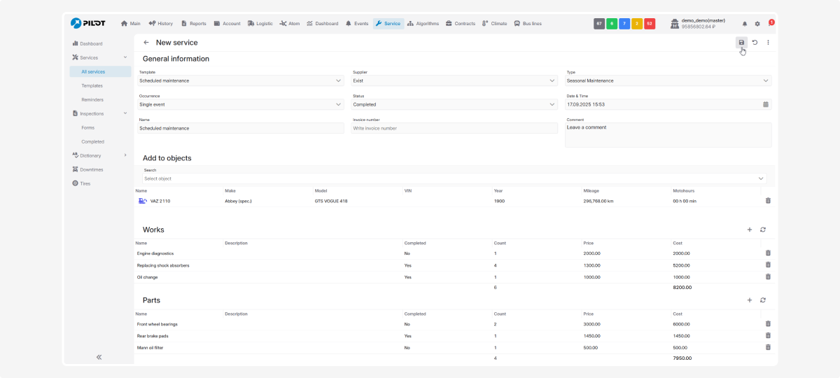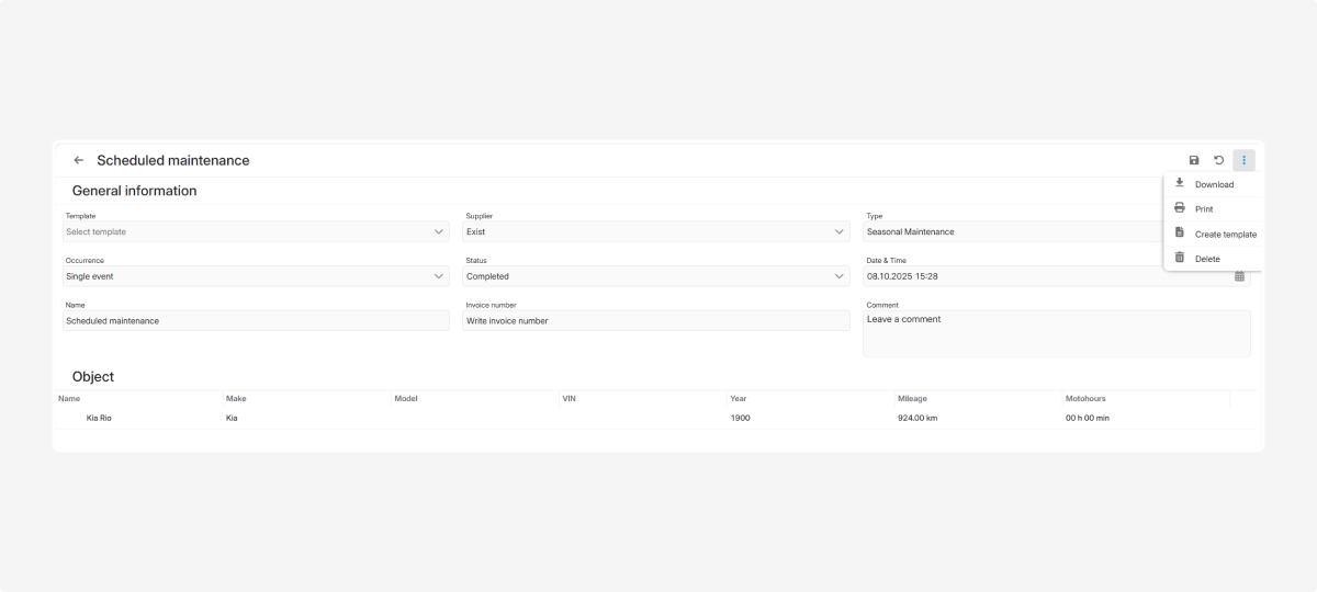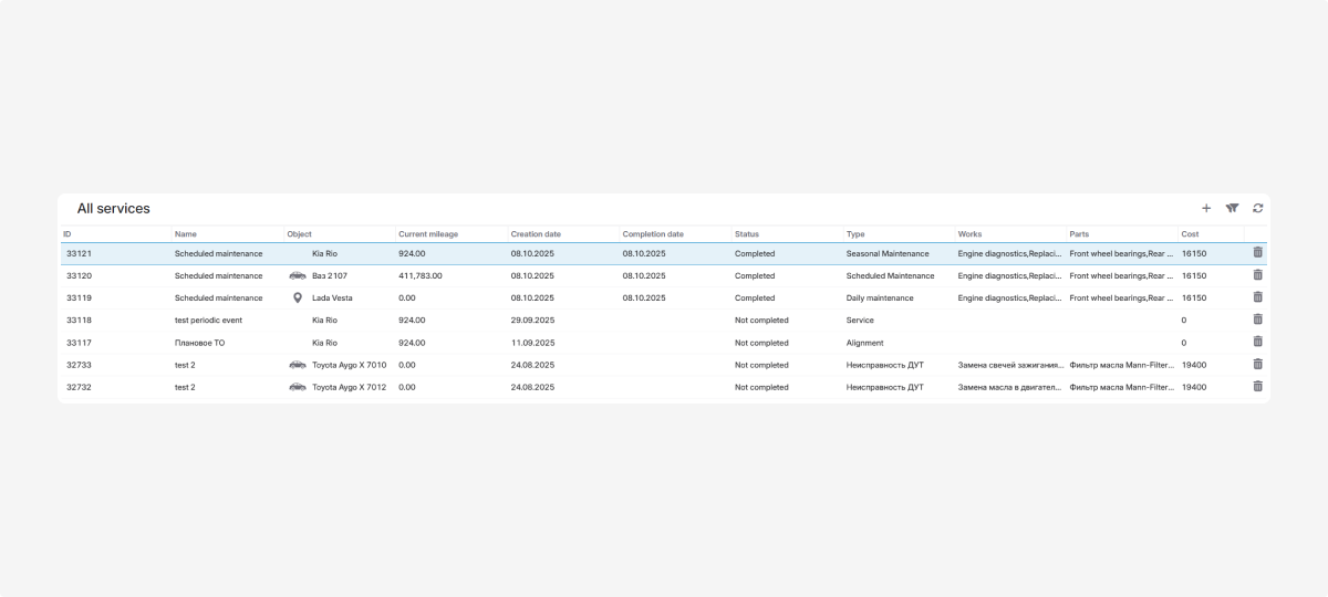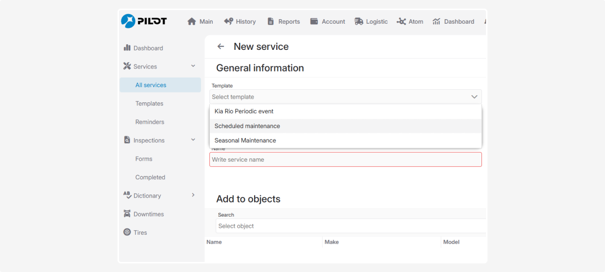 In the Services tab, you can manage all service records, create templates, and set reminders. Here’s how it works: