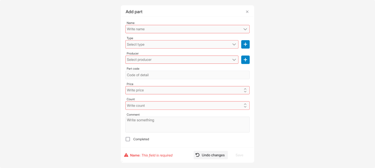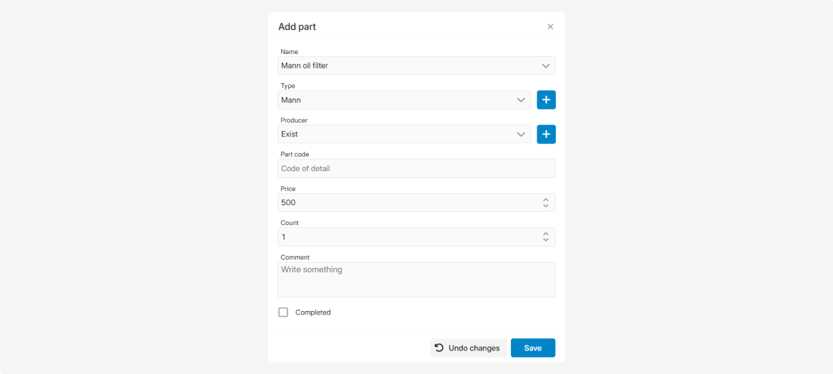 Comment — if needed4. Mark Completed if the part has been installed5. Click Save