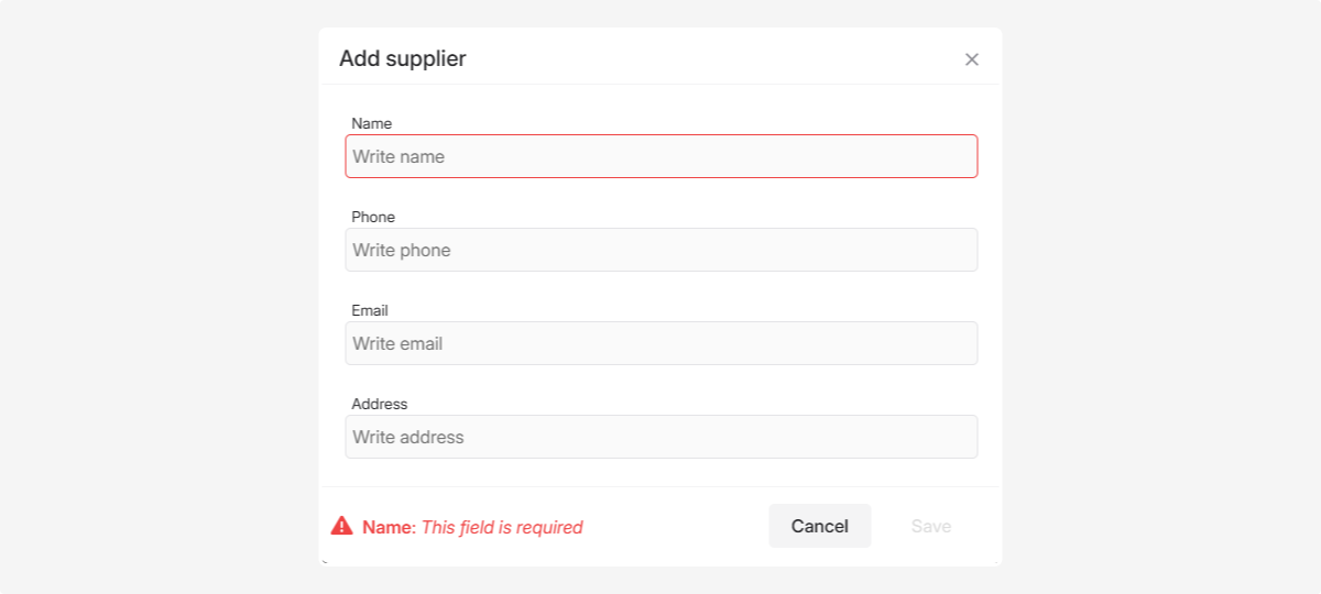 Supplier — select from the dropdown (see below on how to add a supplier)