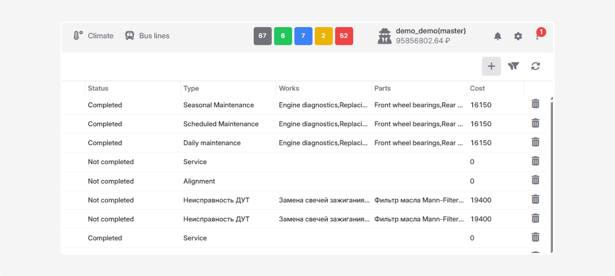 Added parts will appear in the spare parts list, and their total cost will be calculated automatically.