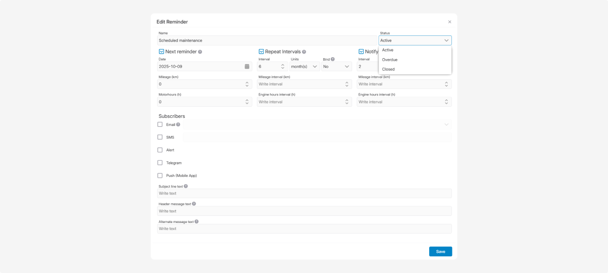 Closed4. Click SaveTo delete a reminder from the list, click on the icon